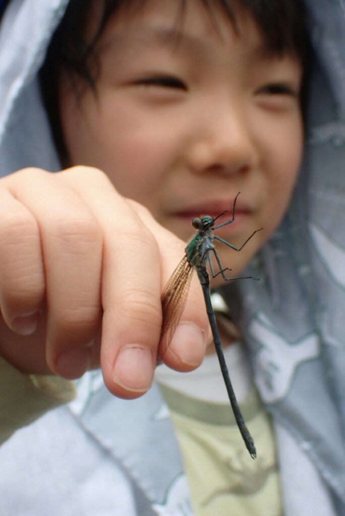 ニホンカワトンボは道路まで舞い上がってくることもあり、採集した子供も何人かいました。