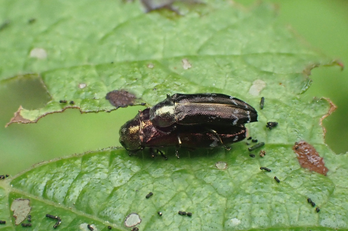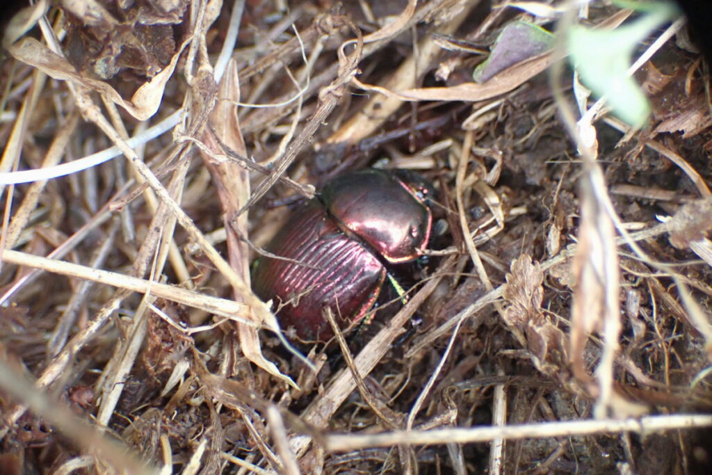 参加者たちもこぞって探虫開始。あちこちにシカ糞が落ちていたので、周辺を丹念に探ると・・いました。